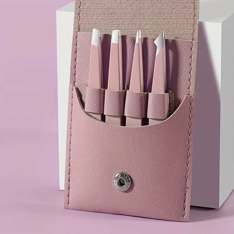 Ouriner Eyebrow Tweezers Set 4 Pcs Stainless Steel Eyebrow Forceps Professional Beauty Tool Set For Facial Hair Inward Growing